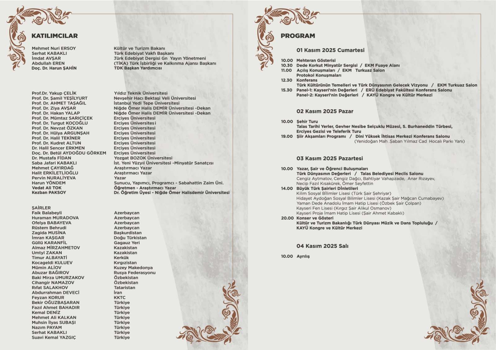 1 - 4 Kasım 2025 tarihlerinde 14 ülkeden 48 şair ve yazarın katılımıyla düzenleyeceğimiz programların saat bilgileri.