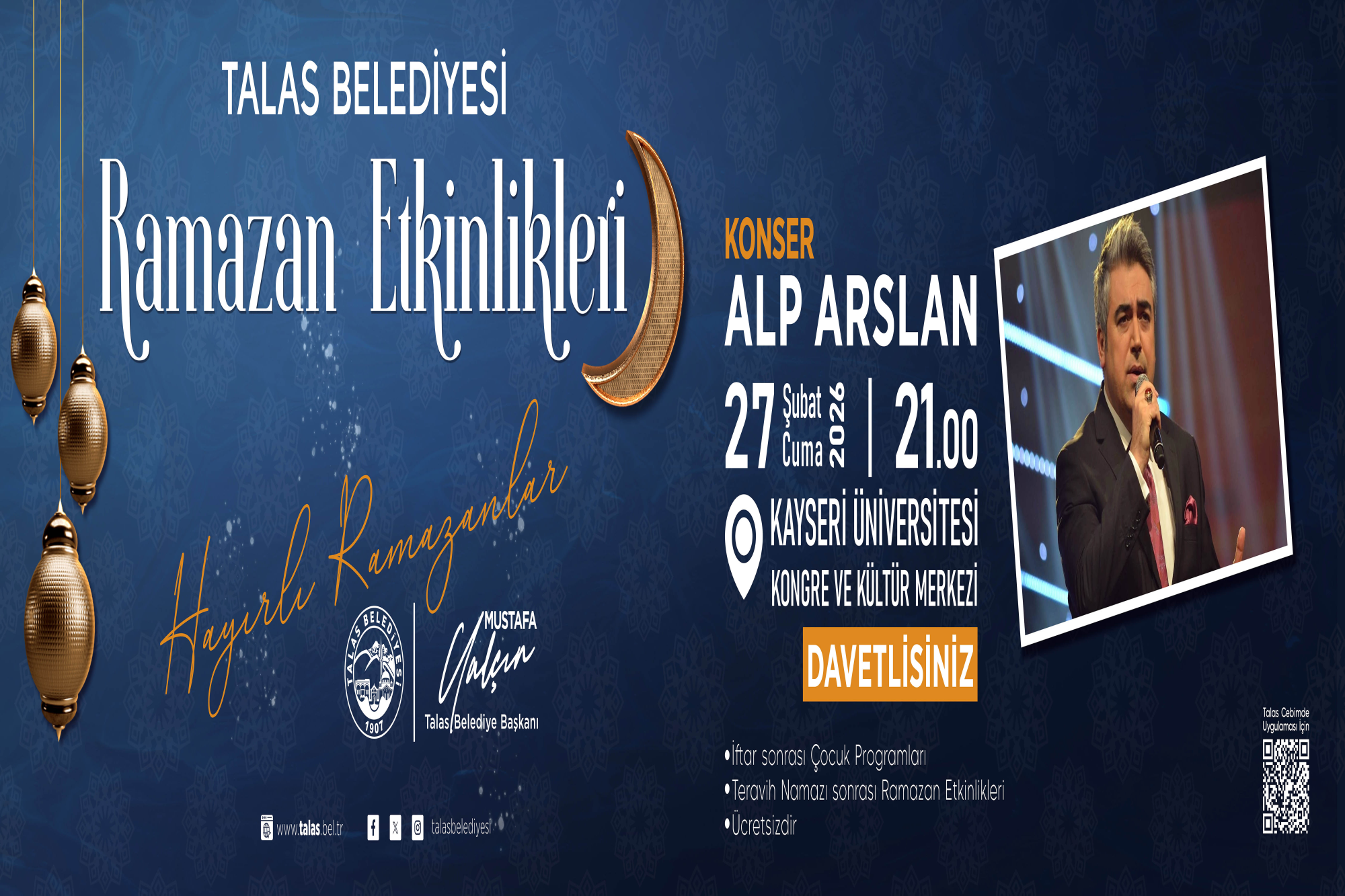 “Ramazan’ın bereketini ve manevi huzurunu hemşehrilerimizle birlikte yaşamak istiyoruz. Kültür ve sanatla zenginleştirdiğimiz bu programlarla her yaştan vatandaşımıza hitap ediyoruz. Talas’ta Ramazan’ın ruhuna yakışır bir birlik atmosferi oluşturmayı hedefliyoruz. Tüm hemşehrilerimizi etkinliklerimize davet ediyorum.”