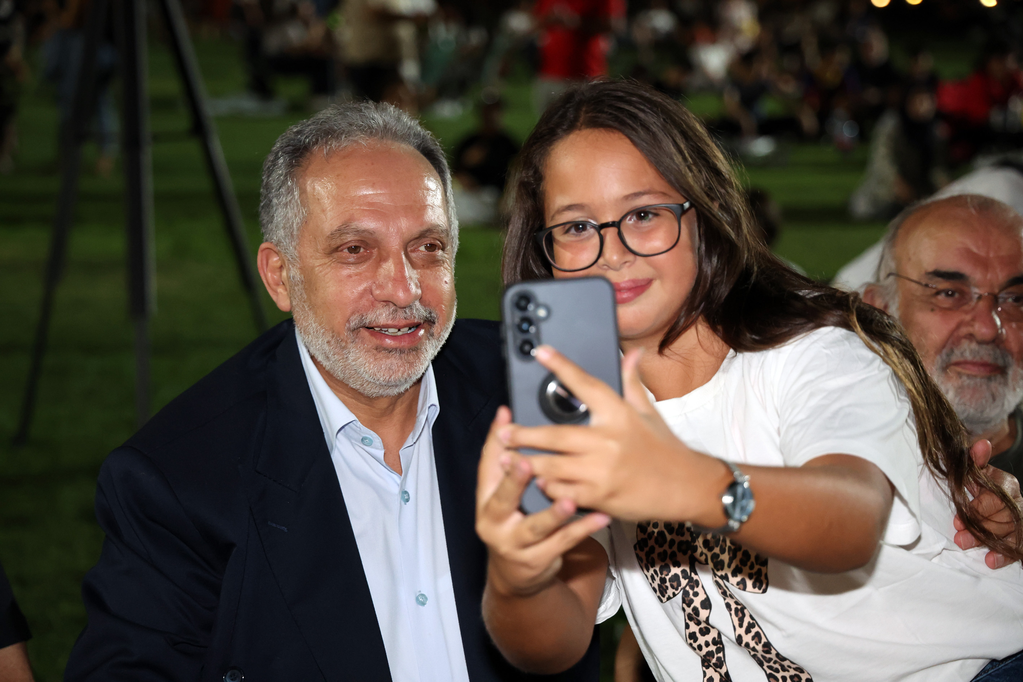 söylenen parçalara eşlik etti. Konser öncesi alanı gezerek vatandaşlarla sohbet