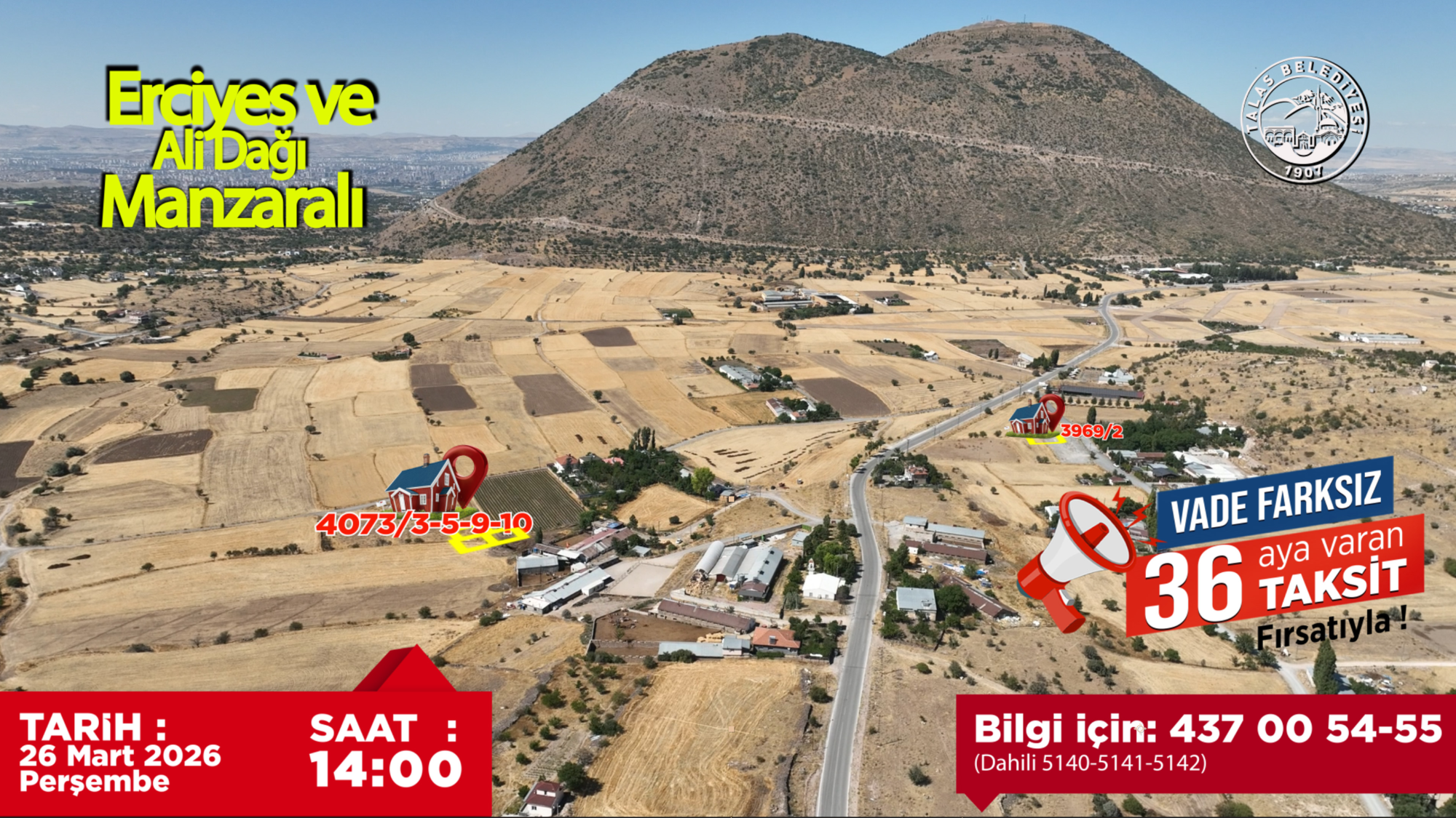 Villa parsellerinin satışı 26 Mart 2026 Perşembe günü saat 14.00’te Belediye Meclis Salonu’nda gerçekleştirilecek. İhaleye katılmak isteyenler, Talas Belediyesi Gelirler Müdürlüğü’ne müracaat ederek detaylı bilgi alabilecek.