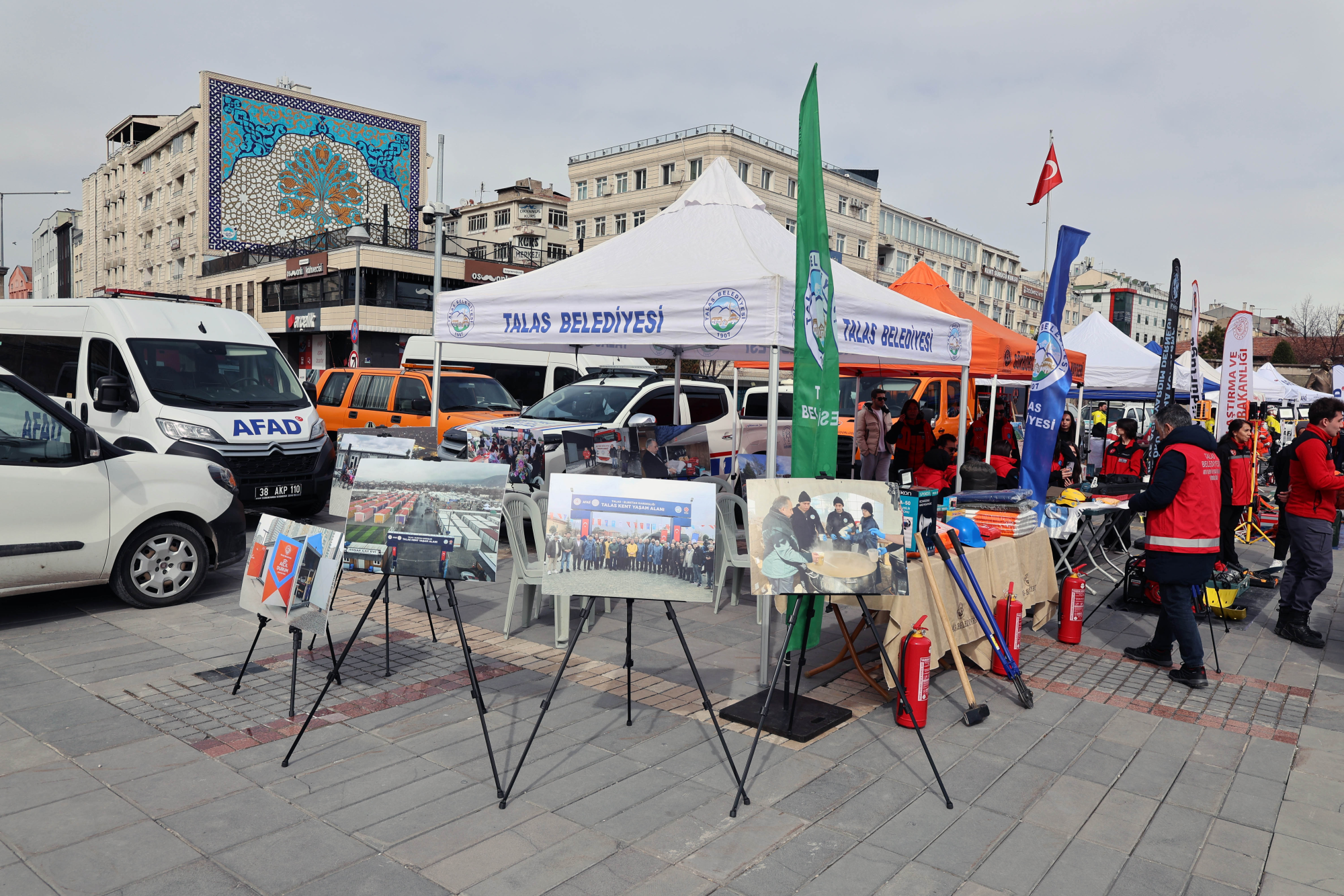 Talas Belediyesi, 1-7 Mart Deprem Haftası kapsamında Cumhuriyet Meydanı’nda kurduğu bilgilendirme standıyla vatandaşlara deprem bilinci kazandırmaya yönelik önemli bir farkındalık çalışmasına imza attı.