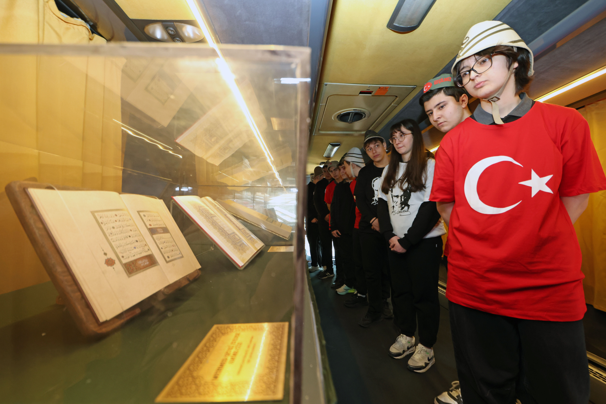 Okul bahçelerine kurulan müze otobüslerini ziyaret eden öğrenciler, Çanakkale ruhunu anlatan tarihi objeleri yakından inceleme fırsatı bulurken, Osmanlı döneminde yazılmış Kur’an-ı Kerim nüshalarının tıpkı basımlarını da görerek medeniyetimizin ilim ve sanat mirasını keşfetti.