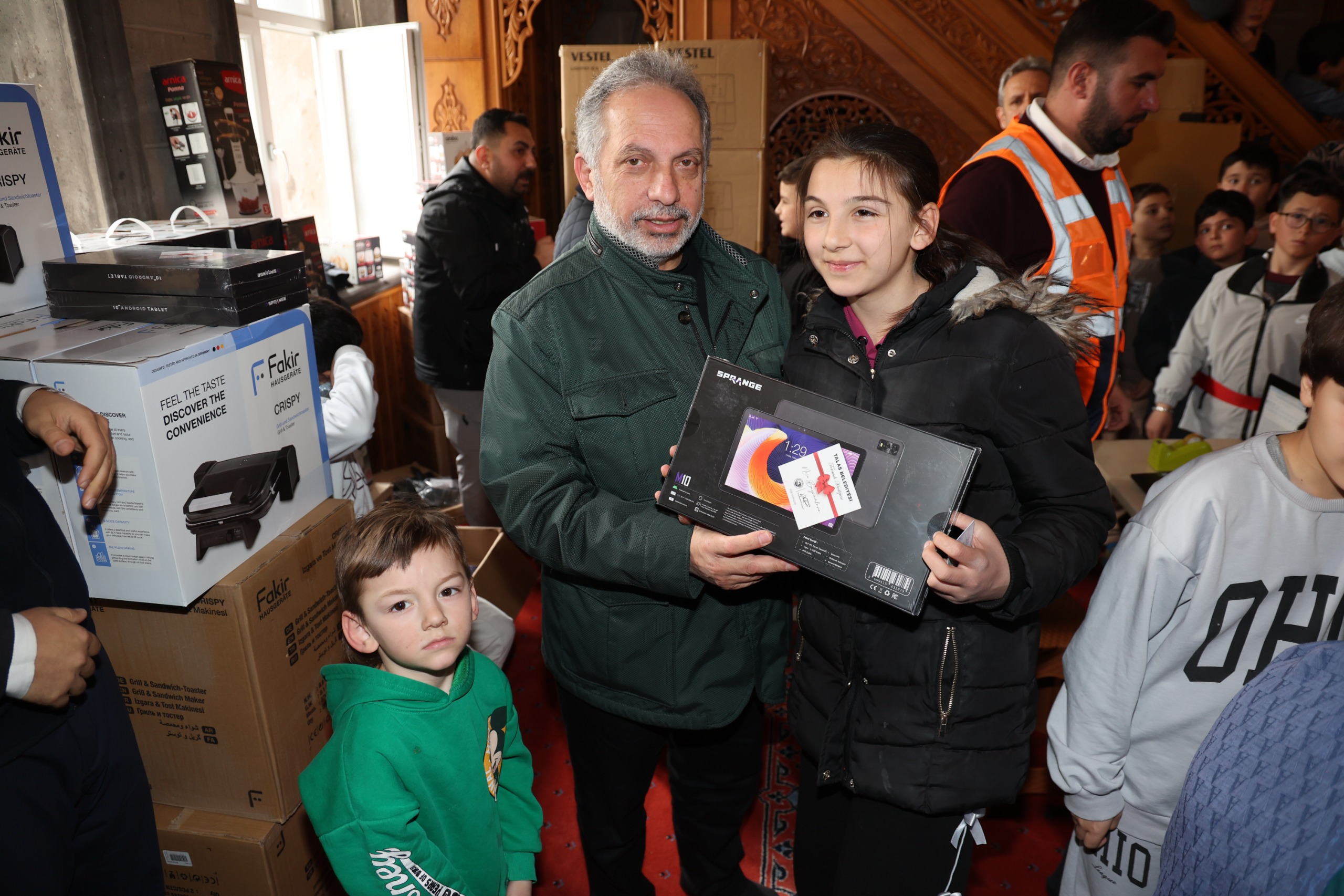 Talas’taki 65 camide 3911 çocuğun katıldığı kampanyanın hediye takdimi de büyük heyecana sahne aldı. Camiyi dolduran çocukların hediye çekiminde Talas Belediye Başkanı Mustafa Yalçın’a gösterdikleri ilgi de büyük oldu.