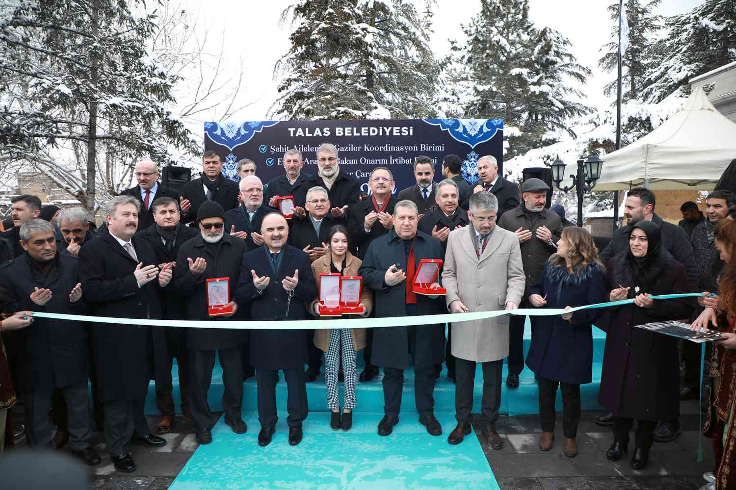 Talas Belediye Başkanı Mustafa Yalçın’ın 100 Ağartan Projeler olarak bütünleştirdiği seçim dönemi projeleri bir bir hayata geçiriliyor. Bu kapsamda; Şehit Aileleri ve Gaziler İrtibat Bürosu, Hayır Çarşısı, Engelli Araçları Bakım Onarım Ünitesi ve Talas Sanat Galerisi’nin açılışı yapıldı.